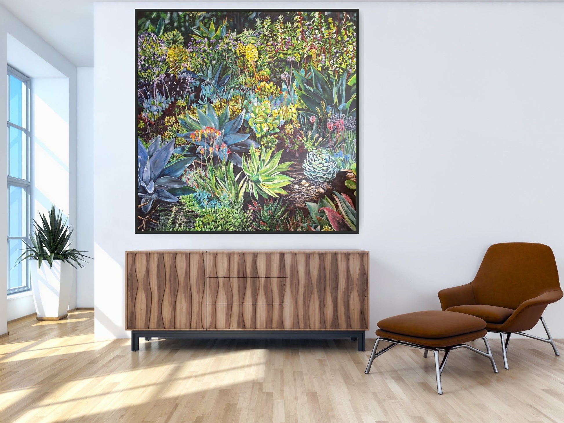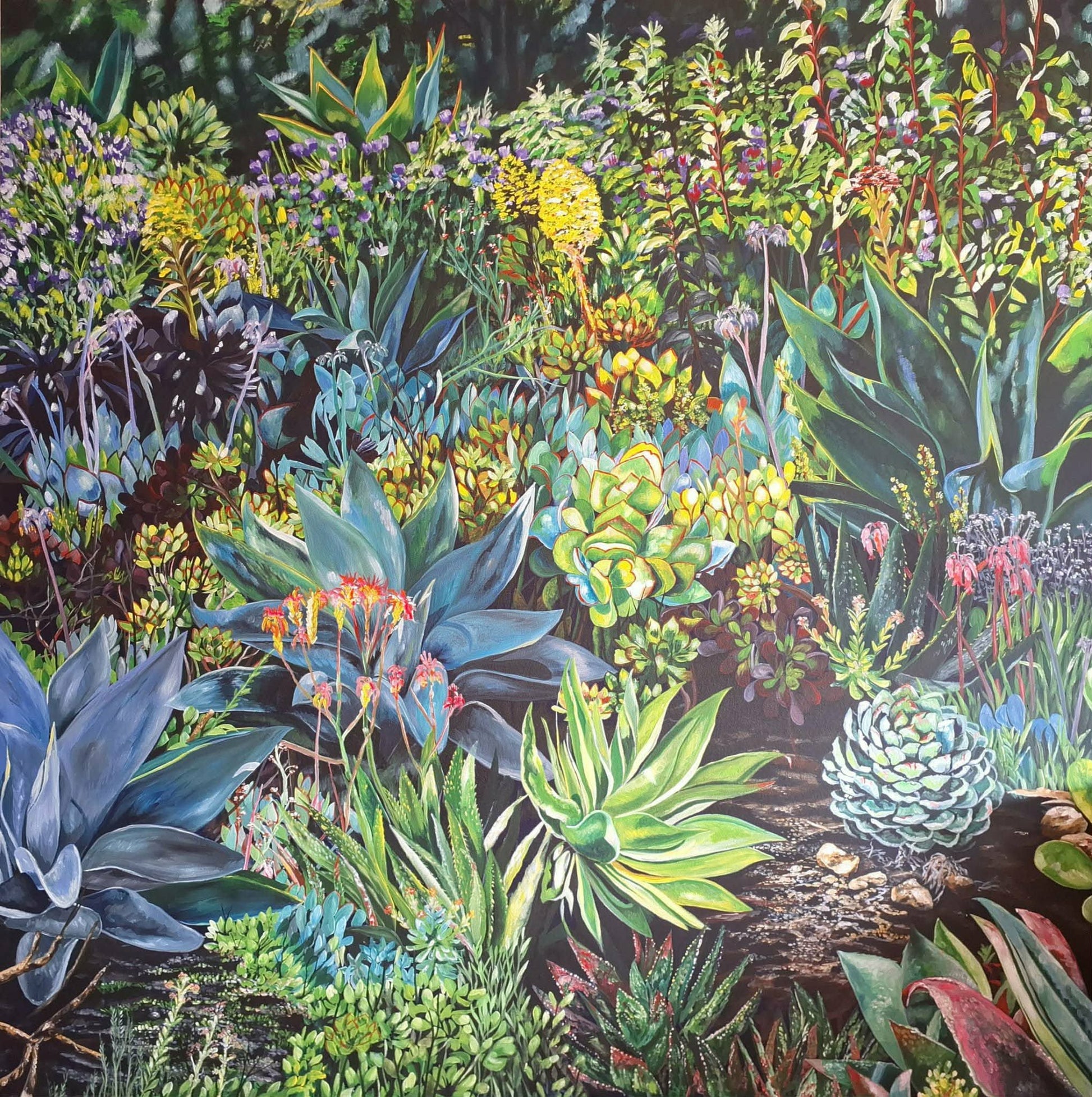 Inspired by the California garden of celebrated landscape designer and artist Bernard Trainor, this painting reflects an approach to making that mirrors nature itself. I build the composition intuitively as the painting unfolds, responding to form, colour, and movement in the moment. The result is a space where structure and looseness coexist, echoing the way landscapes grow, adapt, and evolve over time.